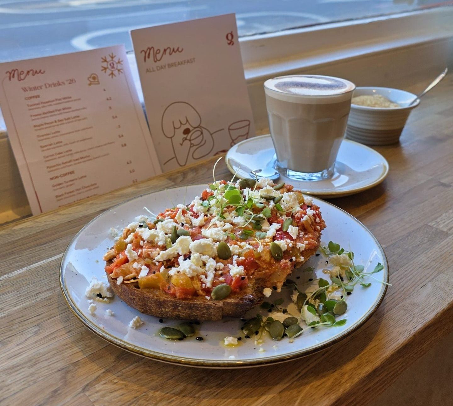 Sourdough Toast, Tomato, Peppers, Feta, Parsley